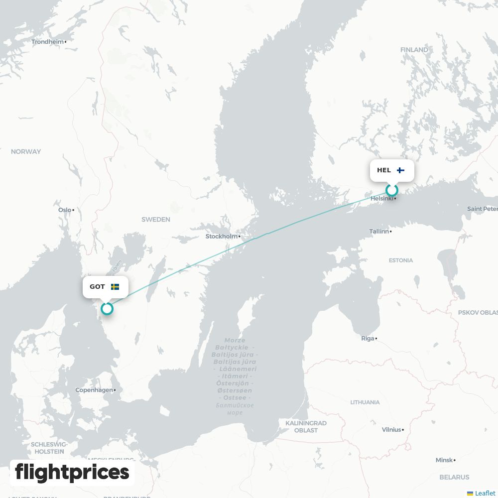 Pikakatsaus reitille Helsinki (HEL) – Göteborg (GOT) — alin ja tyypillinen hinta, hintahaarukka, edullisimmat kuukaudet ja viikonpäivät, reittiä operoivat yhtiöt sekä tavanomainen kesto välillä Suomi ja Ruotsi.